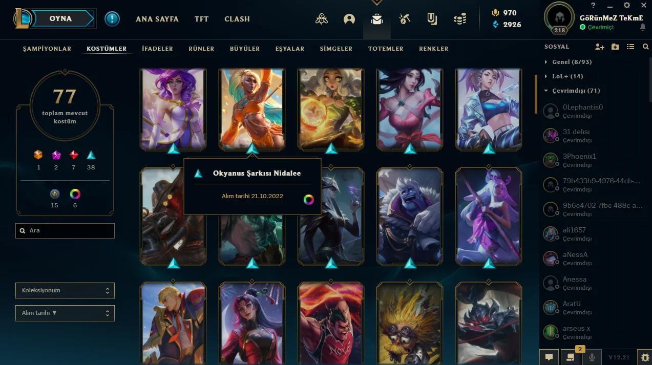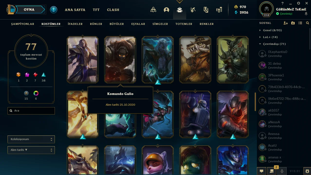 77 kostüm | 218 level | plat 1 | dopdolu hesap #1777